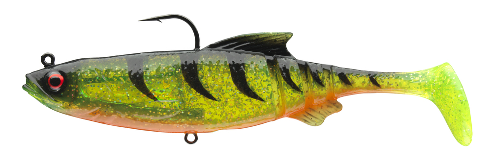 Disponible en tailles 12 cm pour 29 g (sans triple ventral) et 16 cm pour 56 g (avec hameçon triple ventral).