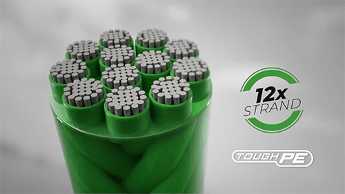 Tresse 12 brins très dense et dont la compacité préserve le profil.